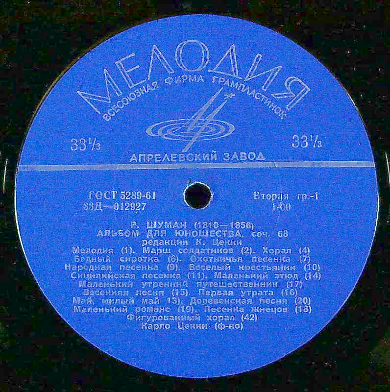 商品コード:1308-059p[MELODIYA] C.ゼッキ(pf) / シューマン:子供のためのアルバムOp.68~28曲
