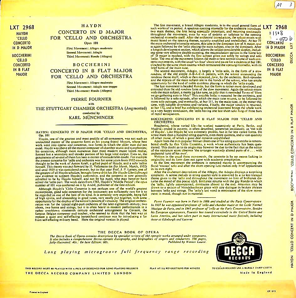 商品コード:1308-050b[DECCA] P.フルニエ(vc) K.ミュンヒンガー指揮シュトゥットガルト室内o. / ハイドン:Vc協奏曲2番Op.101, ボッケリーニ:Vc協奏曲9番
