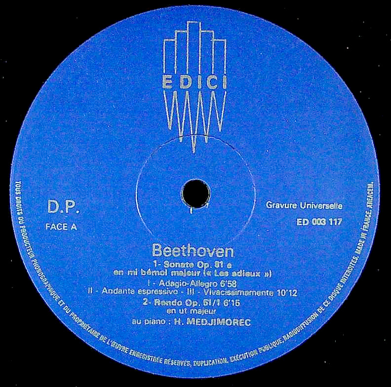 商品コード:REG-2937[仏EDICI] H.メジモレツ(pf) / ベートーヴェン:Pfソナタ26番「告別」, 18番, ロンド, エリーゼのために