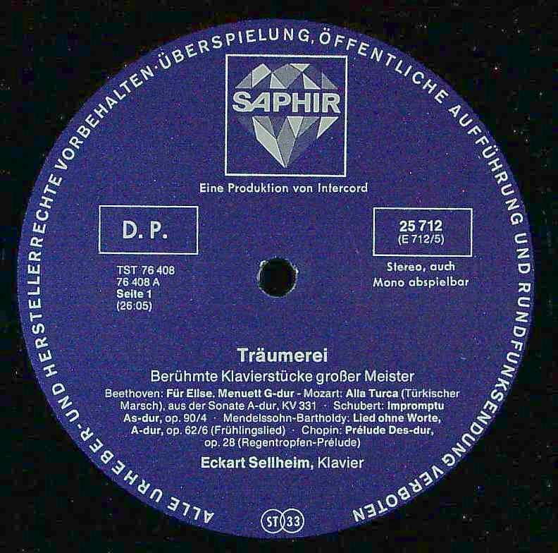 商品コード:REG-2931[独SAPHIR] E.ゼルハイム(pf) / Pf曲集/エリーゼのために, トルコ行進曲, トロイメライ, 愛の夢, 春の歌 他全13曲