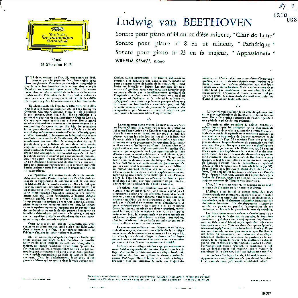 商品コード:1310-063[DGG] W.ケンプ(pf) / ベートーヴェン:Pfソナタ8番「悲愴」, 14番「月光」, 23番「熱情」