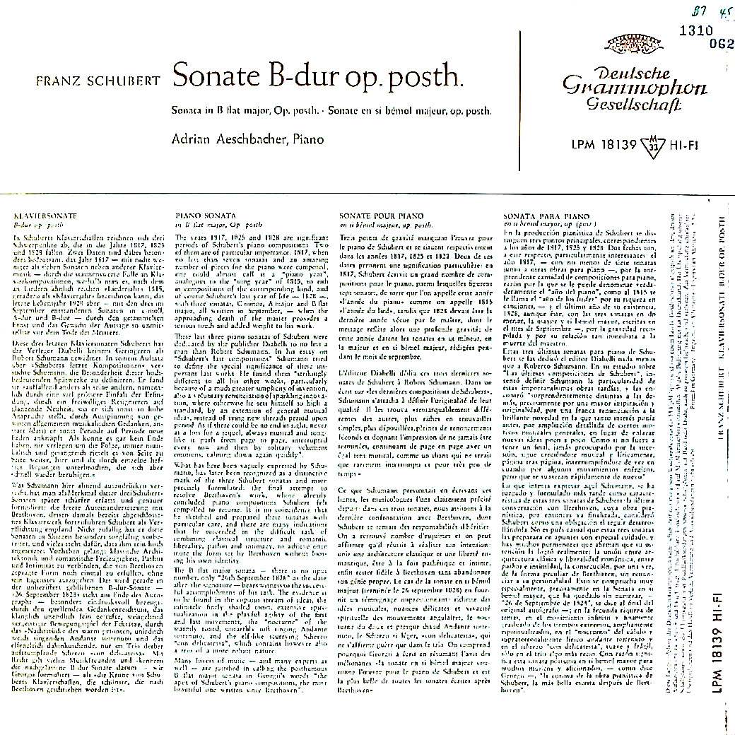 商品コード:1310-062p[DGG] A.エッシュバッハー(pf) / シューベルト:Pfソナタ21番