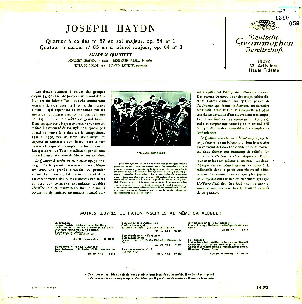 商品コード:1310-056p[DGG] アマデウスQt. / ハイドン:弦楽四重奏曲第63, 65番(第50番)