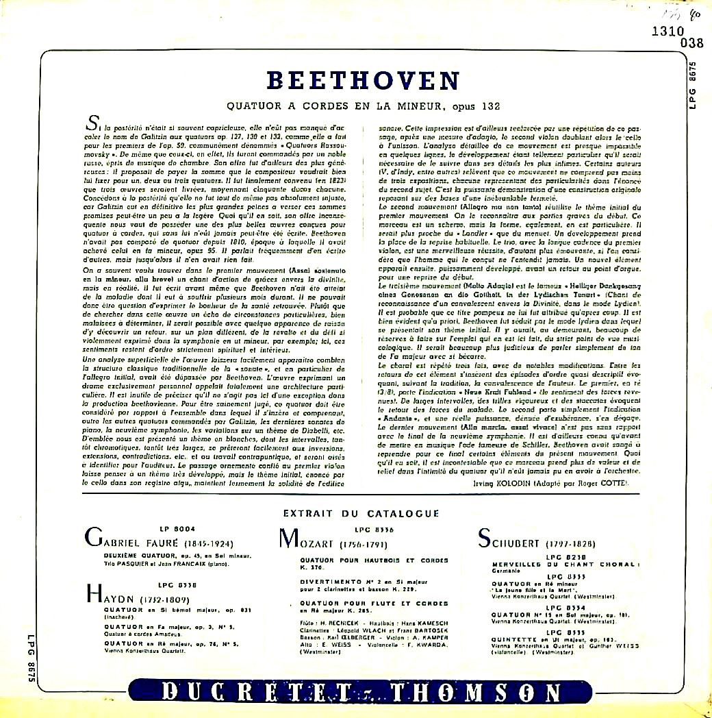 商品コード:1310-038[Ducretet Thomson] ウィーン・コンツェルトハウスQt. / ベートーヴェン:弦楽四重奏曲15番