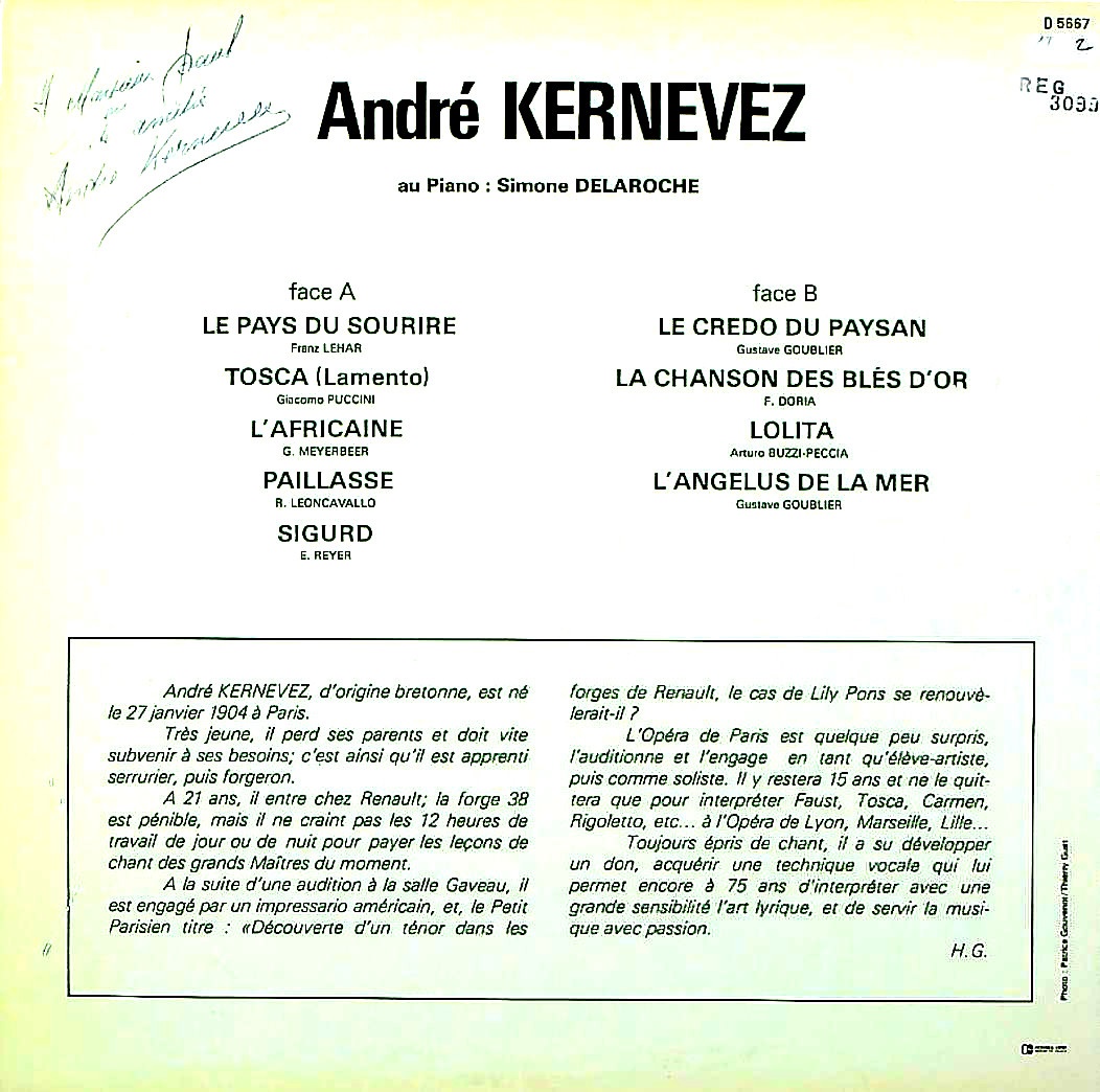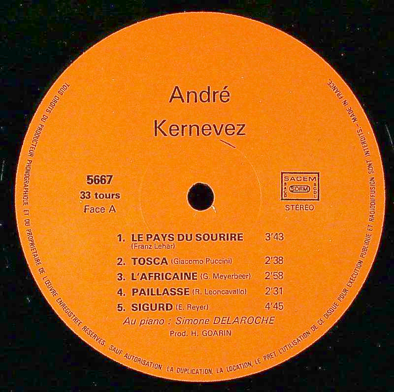 作品名:「ケルネベス・オペラ・アリア集」レハール:ほほえみの国, プッチーニ:トスカ, マイアベーア:アフリカの女, レオンカヴァッロ:道化師, レイエ:シグール, グブリエ:農民の信条, 海のアンジェラス, ドリア:黄金の小麦の歌, ブッツィ・ペッチャ:ロリータ