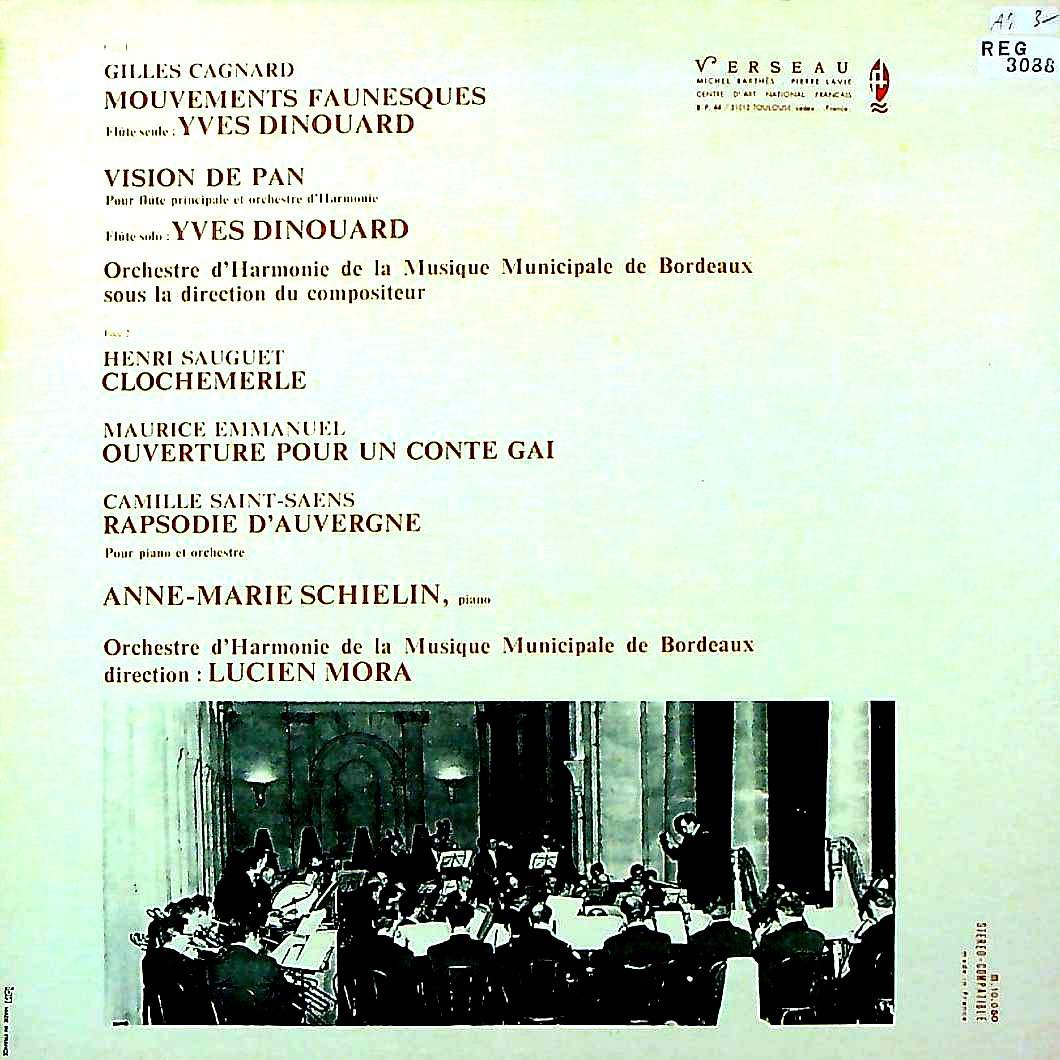 演奏者:G.カニャール/L.モラ指揮ボルドー市立音楽o., Y.ディヌアール(fl)A.M.シュイラン(pf)