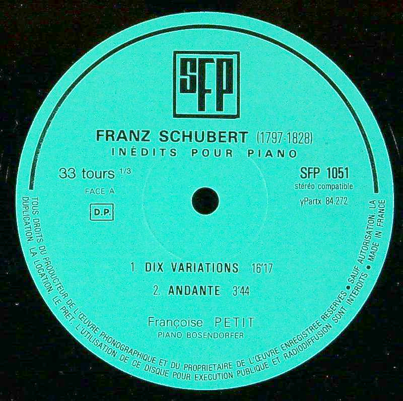 商品コード:REG-3084[仏SFP] F.プティ(pf) / 「シューベルト:未発表のピアノ作品」
