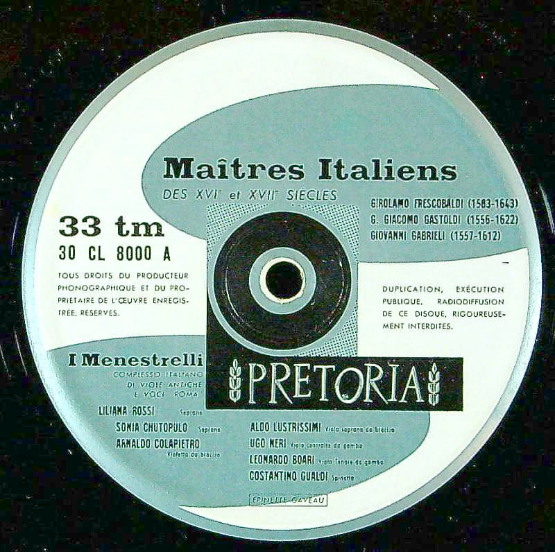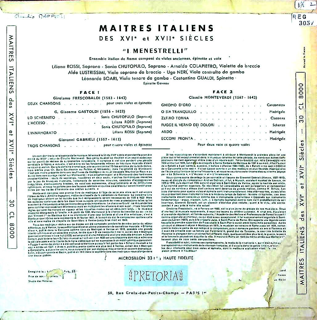 作品名:「16~17世紀のイタリアの巨匠たち」フレスコヴァルディ:3Vnとスピネットのための2つの歌, ガストルディ:歌曲3曲, ガブリエル:4Vnとスピネットのための3つの歌, モンテヴェルディ:マドリガル・カンツォーネ等歌曲6曲
