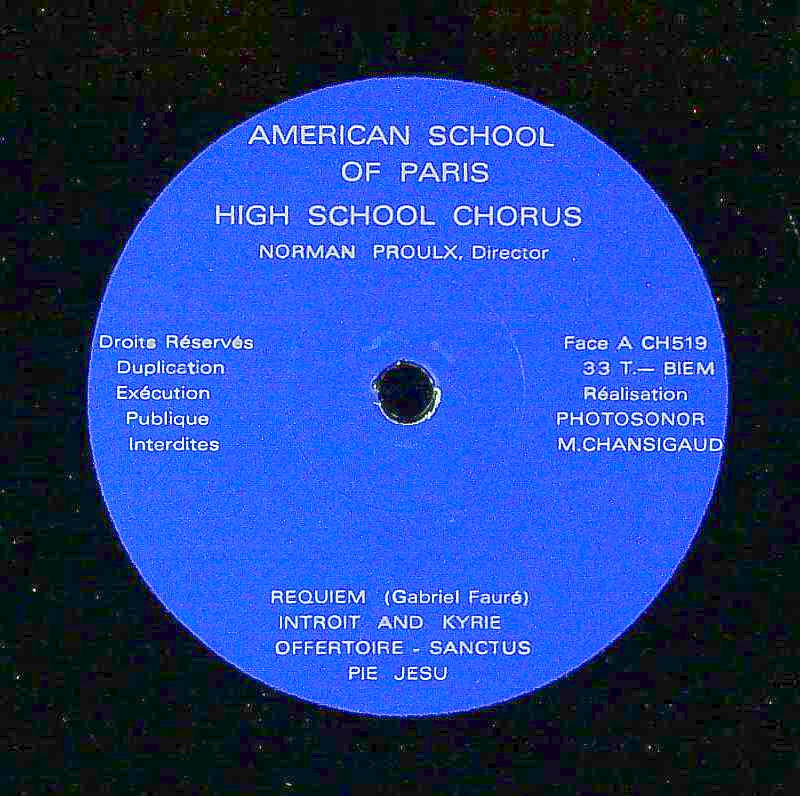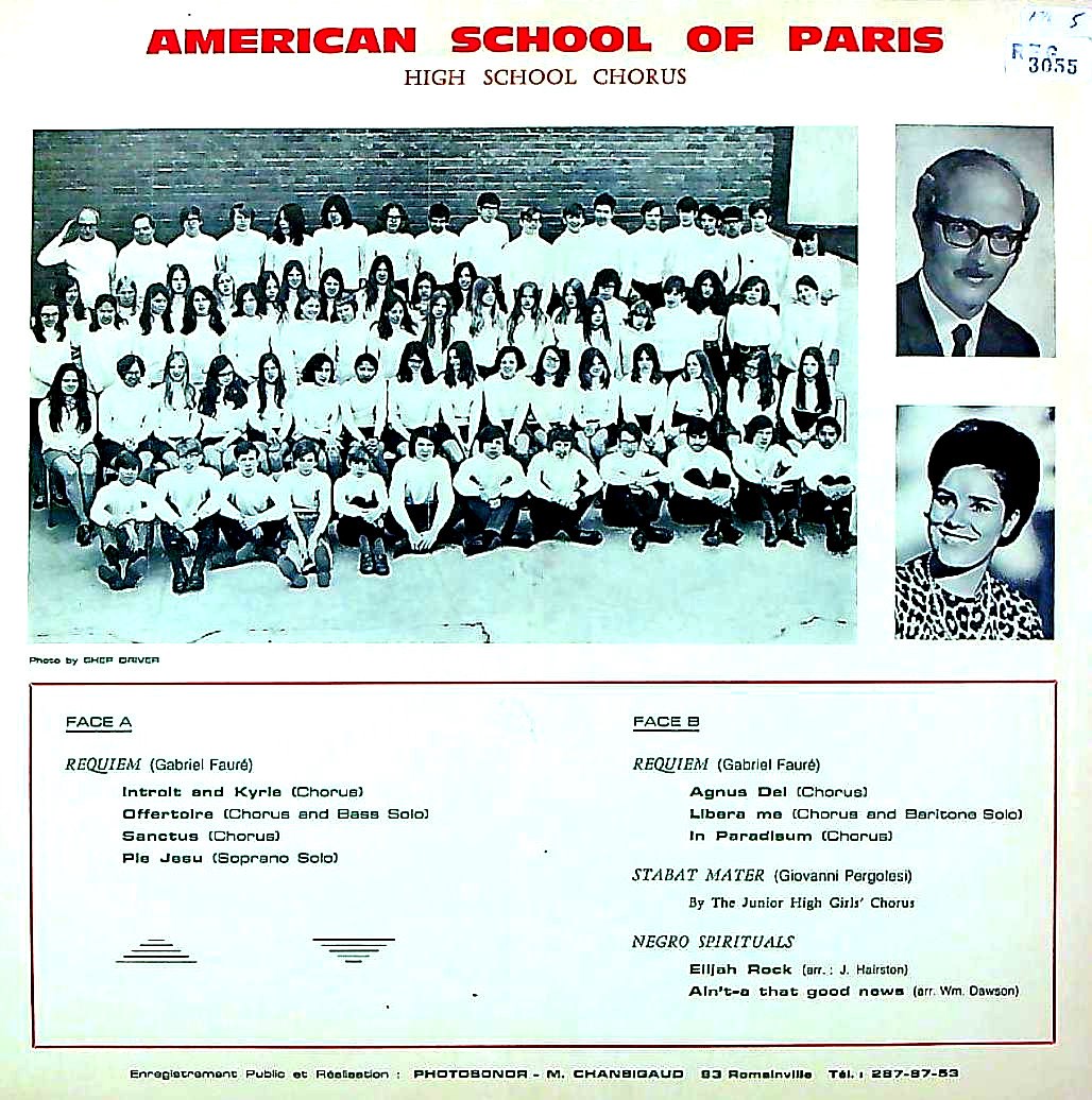 演奏者:N.プルー指揮パリのアメリカンハイスクール少年少女cho.M.ラッセール(s)L.ショヴォー(br)