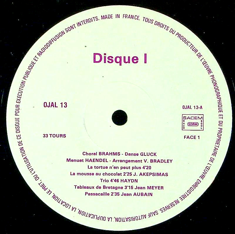 トピックス:未洗浄, 白/紫GG, 三方開ツヤ, OJALは「Orchestres De Jeunes Alfred Loewenguth」の略で「レーヴェングート主宰の子供たちのオーケストラ」の意。その演奏会(発表会)の記録レコード