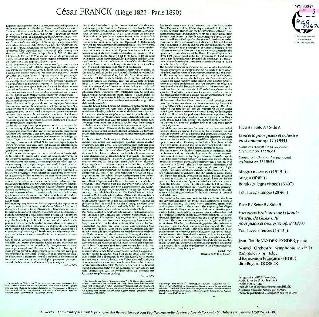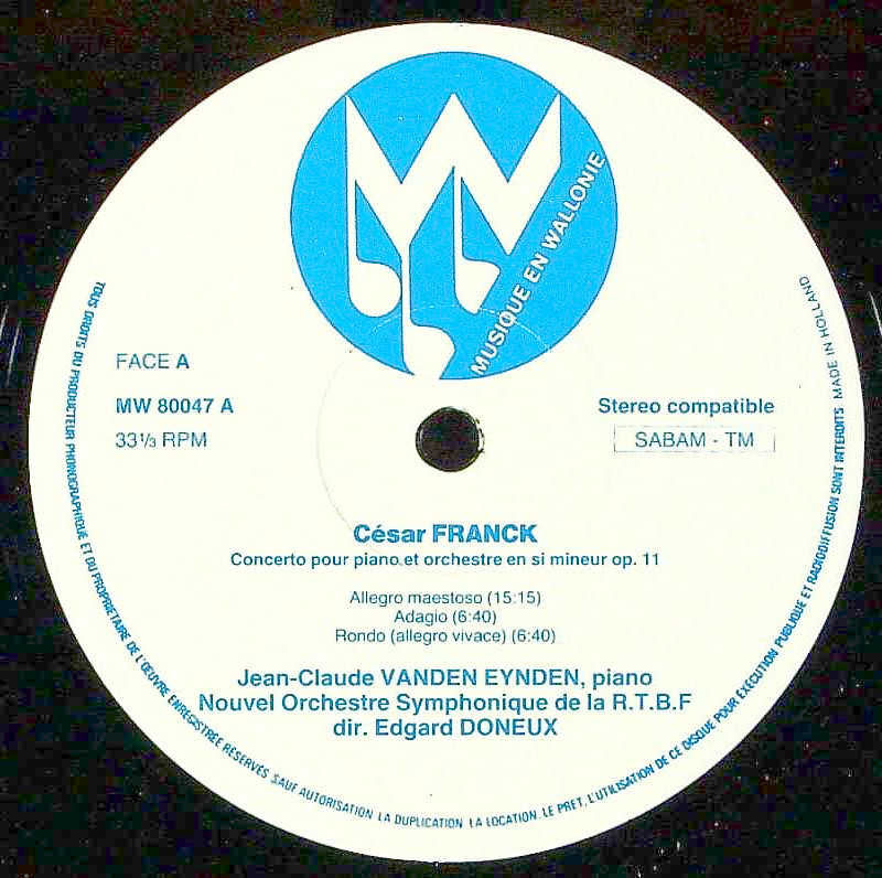 商品コード:REG-3047t[仏MUSIQUE EN WALLONIE] J.C.ヴァーデン・エインデン(pf) / フランク:Pf協奏曲2番1, 華麗なる変奏曲