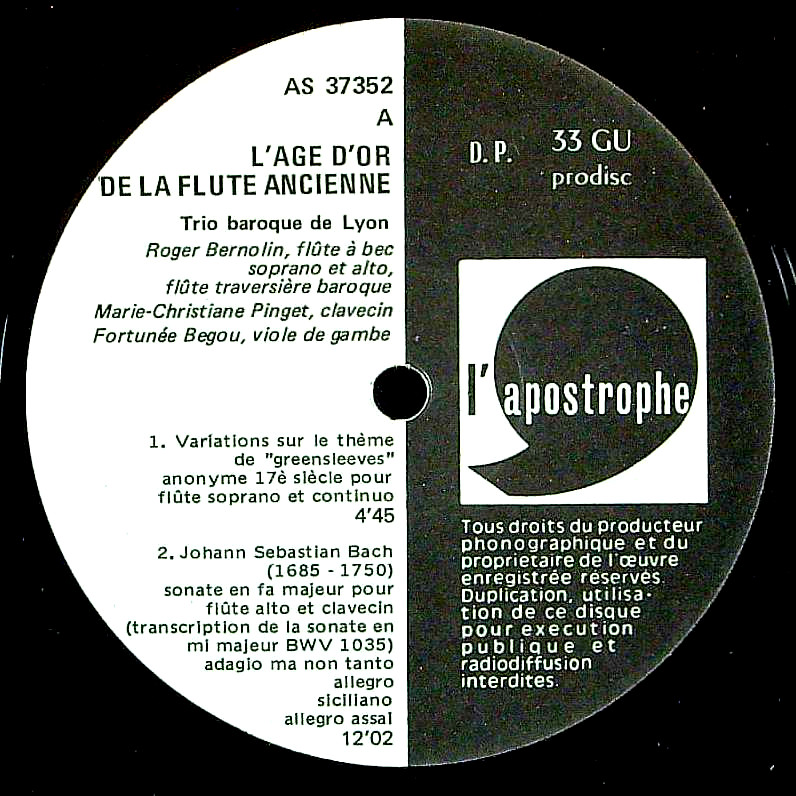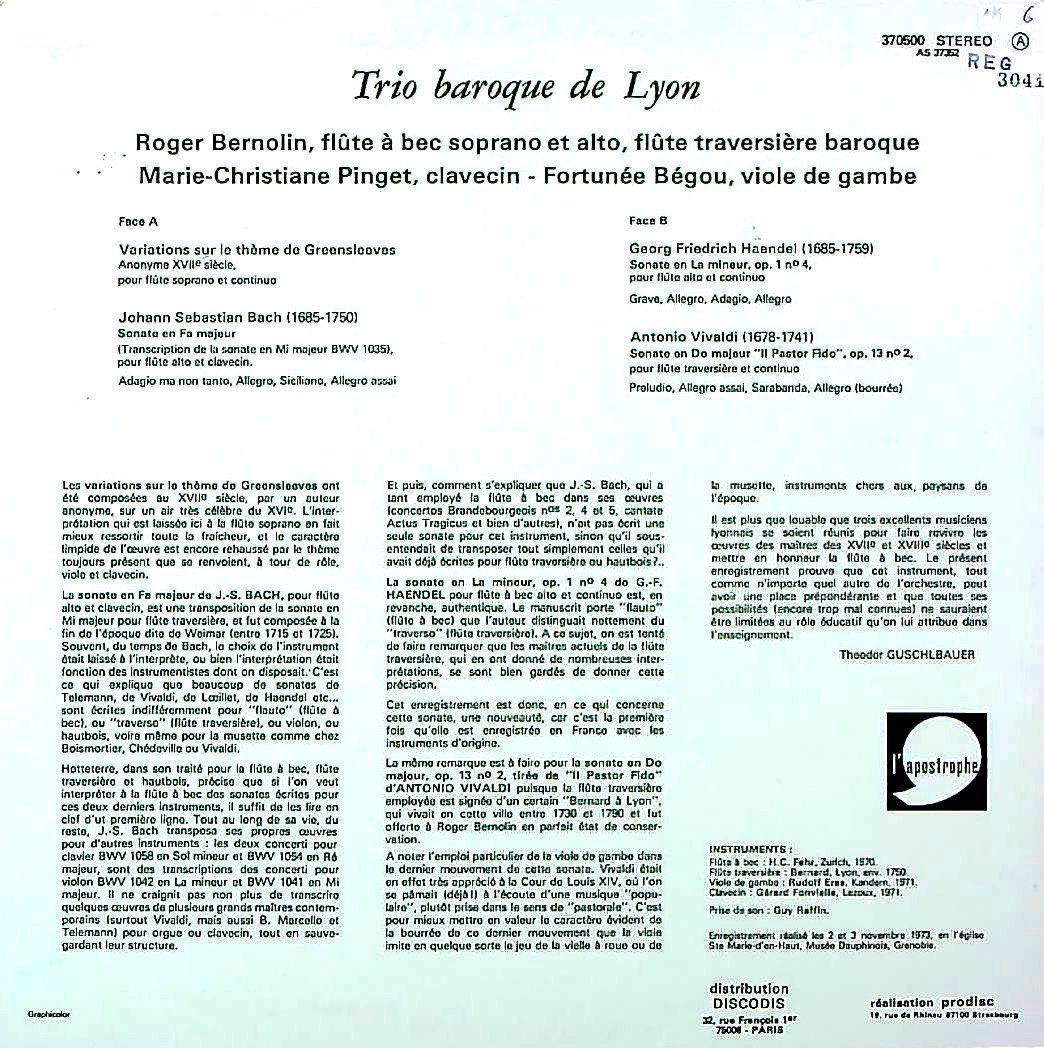 演奏者:R.ベルノラン(fl)M.C.ピンケゲ(cemb)F.ベグー(gamb)
