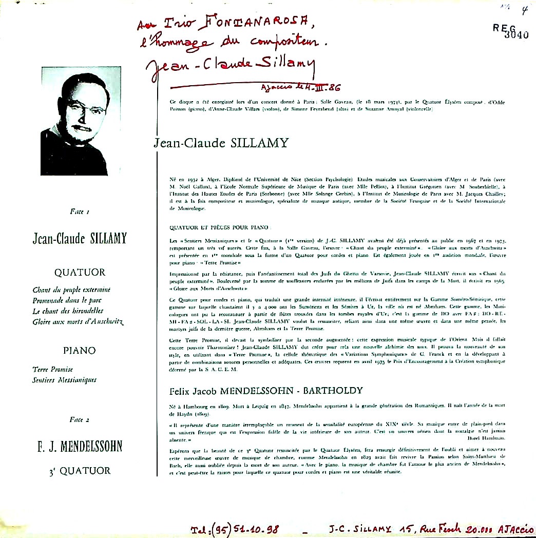 演奏者:エリゼQt(O.ポワソン(pf)A.D.ヴィラー(vn)S.フェイラーベンド(va)S.アモヤール(vc))