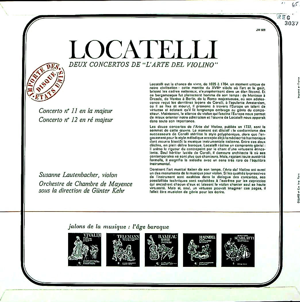商品コード:REG-3037[仏Les Cahiers du Disque] S.ラウテンバッハー(vn)/ ロカテッリ:Vn協奏曲11, 12番