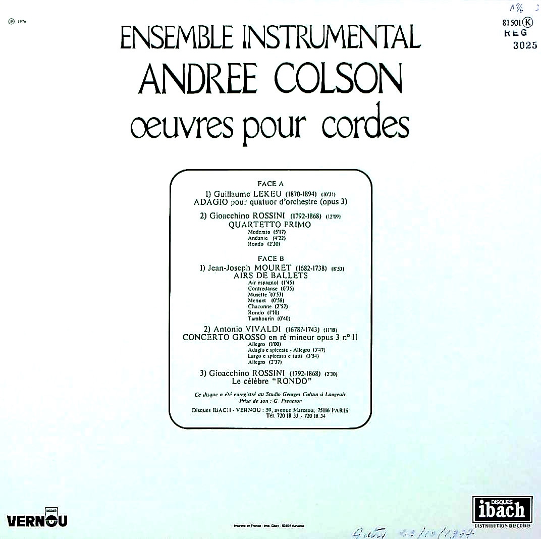 商品コード:REG-3025[仏IBACH] アンドレ・コルソン器楽Ens. / 「弦楽のための作品集」