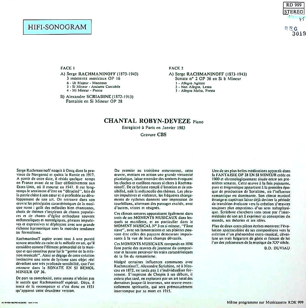 商品コード:REG-3019p[仏 Hifi-Sonogram] C.ロビン・ドゥヴェ(pf) / ラフマニノフ:, スクリャービン