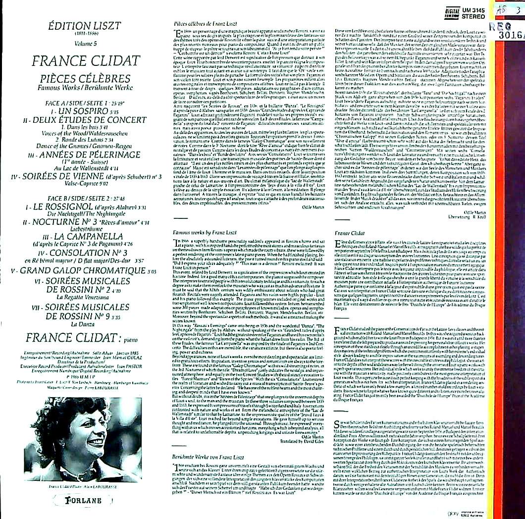 商品コード:REG-3016p[仏FORLANE] F.クリダ(pf) / 「リスト編5巻~有名な小品」