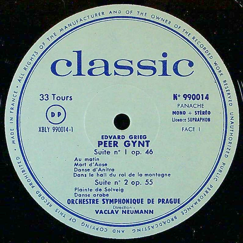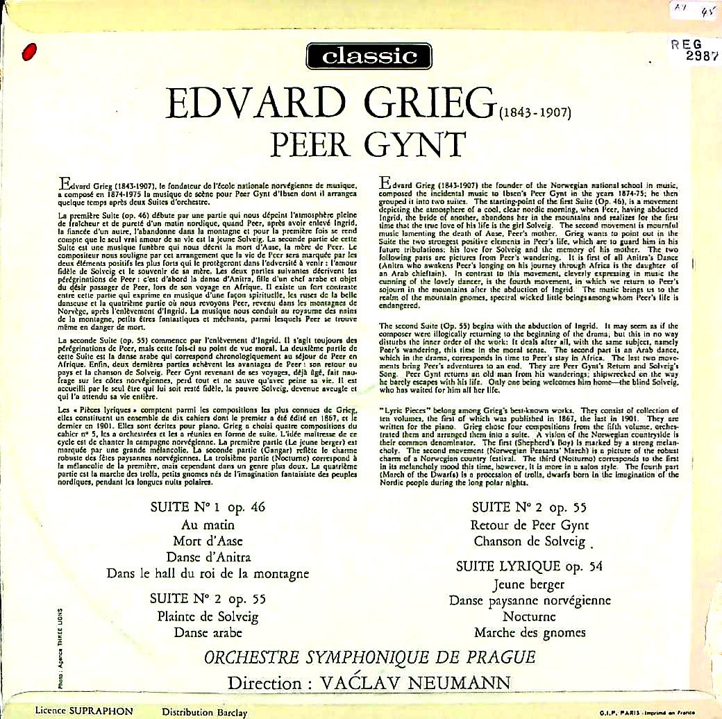 商品コード:REG-2987[仏CLASSIC] V.ノイマン指揮プラハso. / グリーグ:ペール・ギュント 他