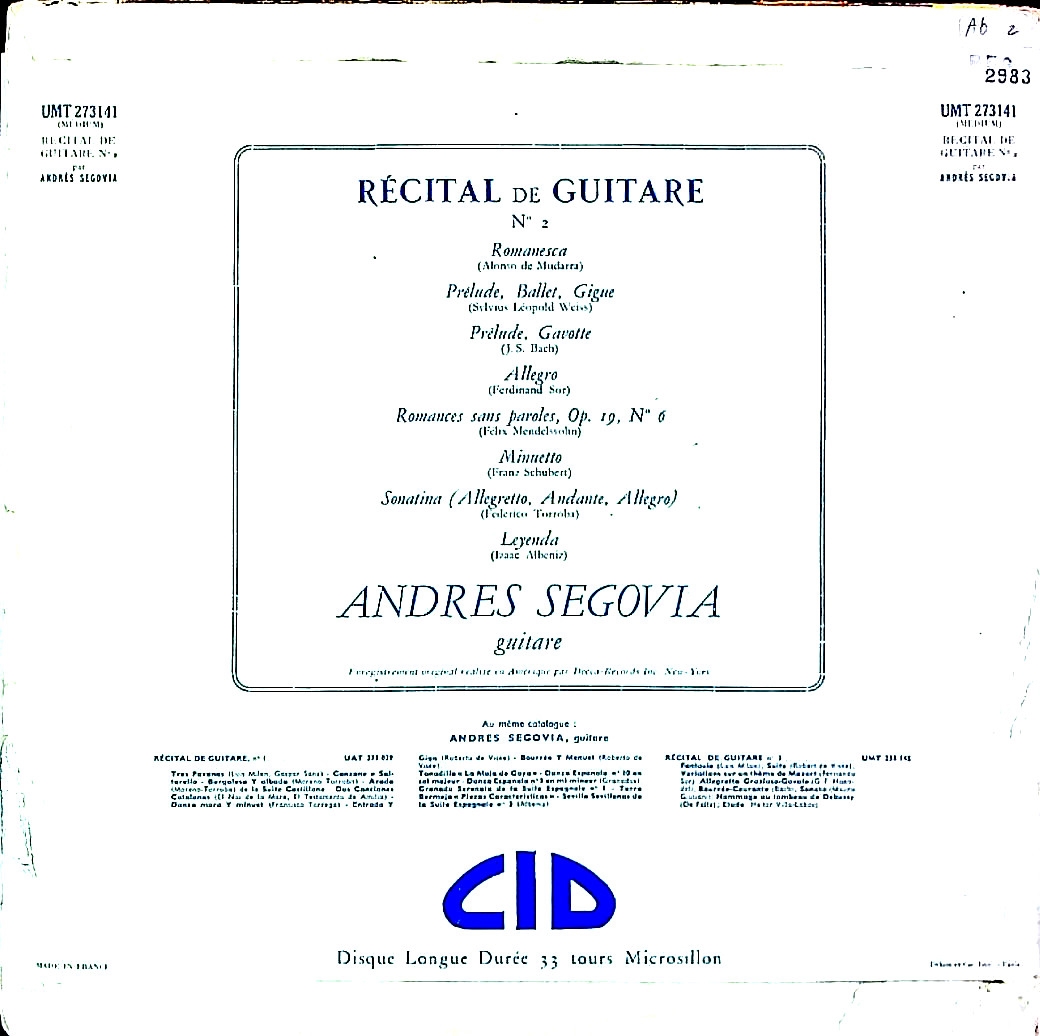 商品コード:REG-2983[仏CID] A.セゴビア(gt) / 「セゴビア・GtリサイタルNo.2」