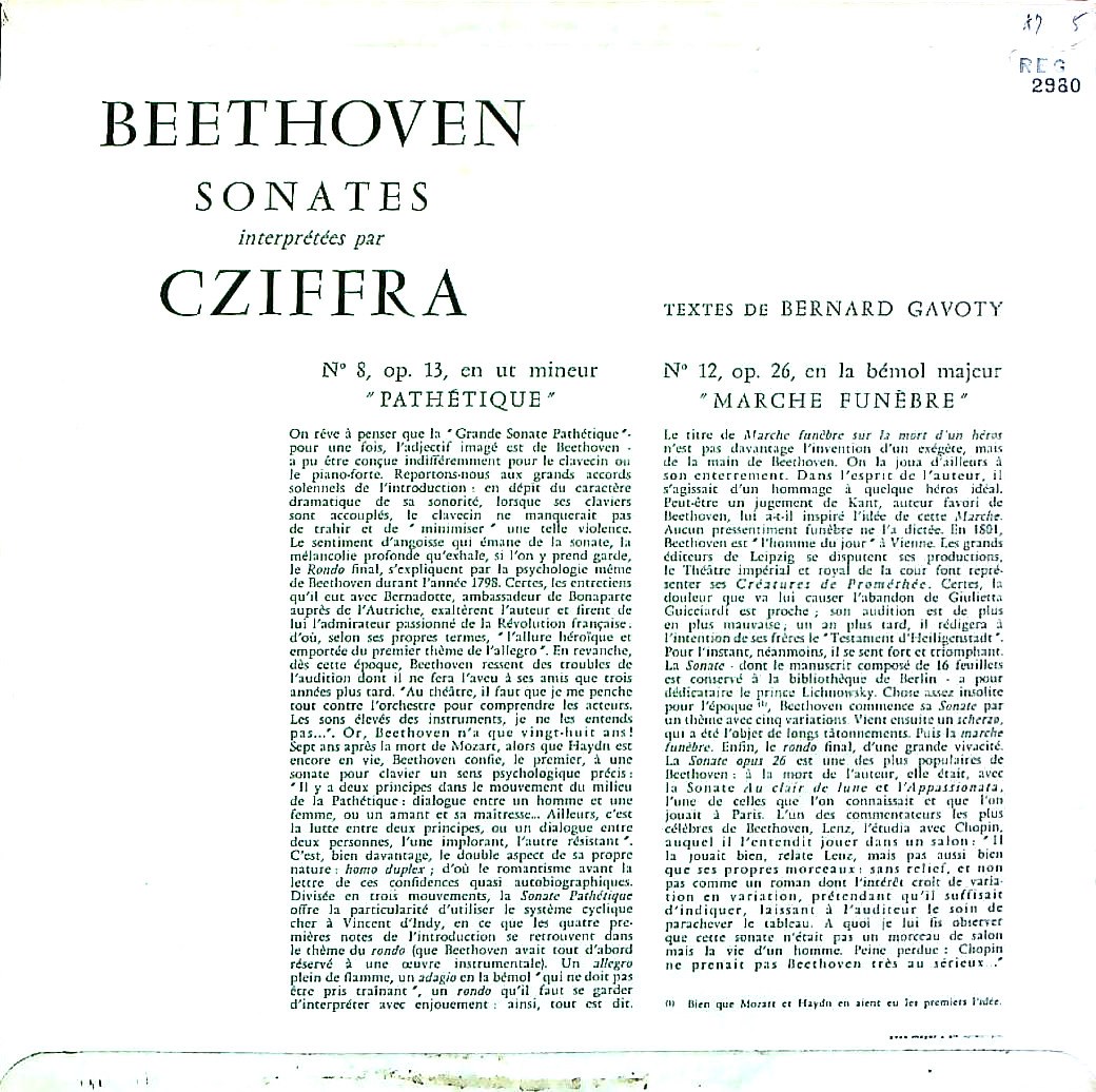 商品コード:REG-2980[仏CZIFFRA PRODUCTIONS] G.シフラ(pf) / ベートーヴェン:Pfソナタ8番「悲愴」, 12番「葬送」