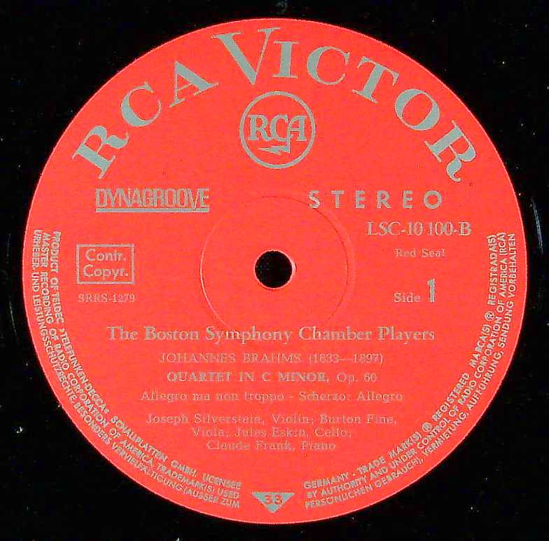 商品コード:REG-3126[独RCA] ボストンso.チェンバー・プレイヤーズ / ブラームス:Pf四重奏曲