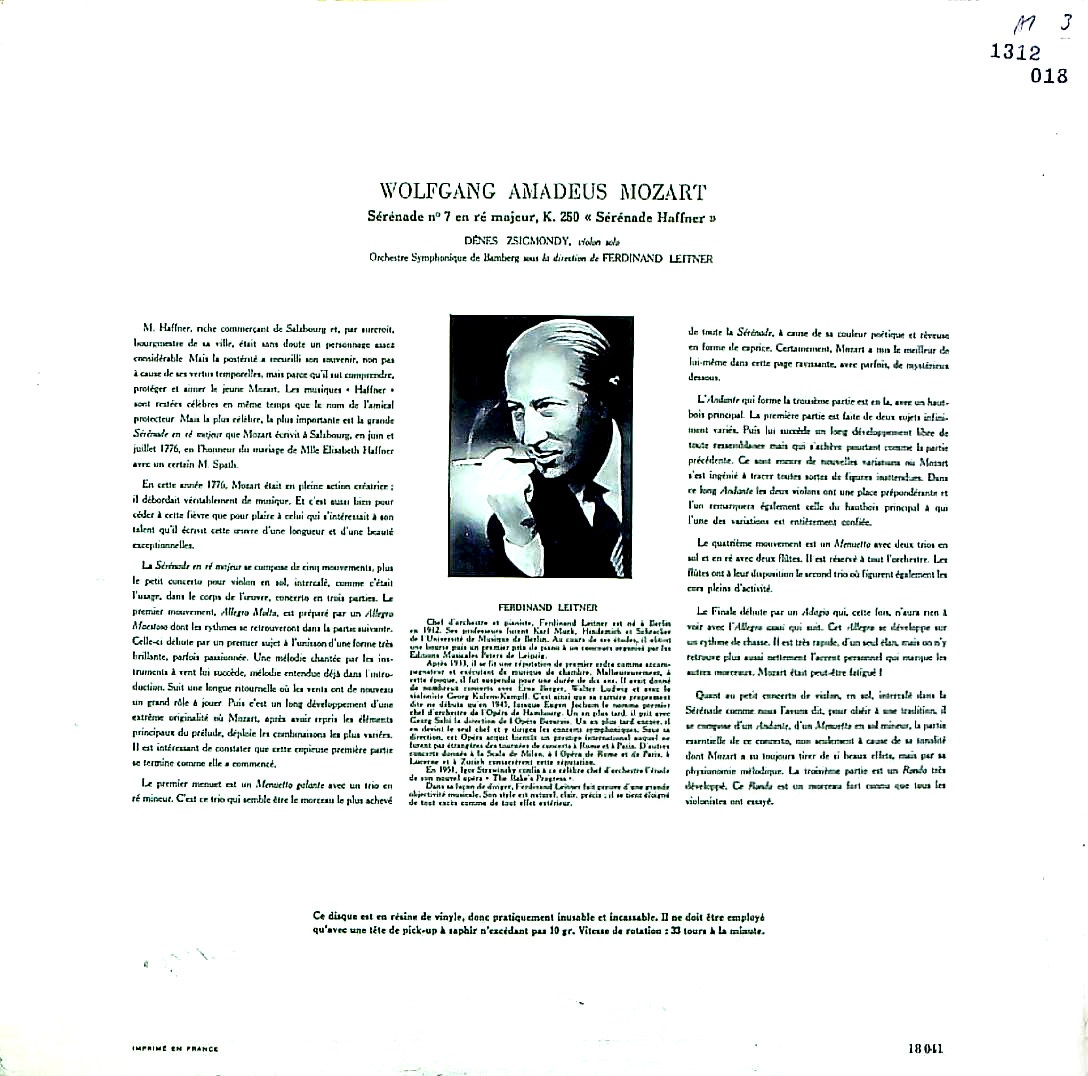 商品コード:1312-018[DGG] F.ライトナー指揮/ モーツァルト:セレナーデ7番「ハフナー」