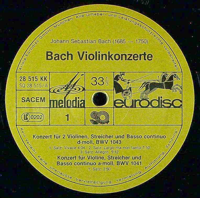 商品コード:1312-010[EURODISC] G.クレーメル T.グリンデンコ(vn)/ バッハ:Vn協奏曲1番, 2Vn協奏曲