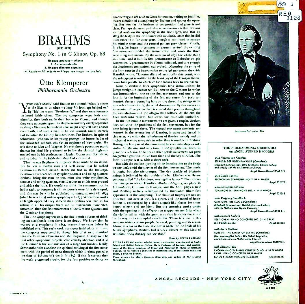 商品コード:REG-3128[米ANGEL] O.クレンペラー指揮/ ブラームス:交響曲第1番