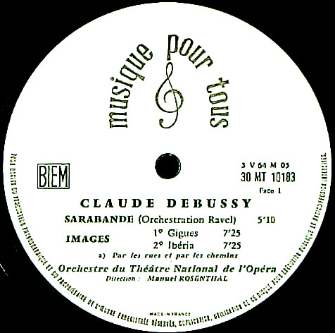 商品コード:1313-024[VÉGA] M.ロザンタール指揮 / ドビュッシー:サラバンド, 管弦楽のための映像