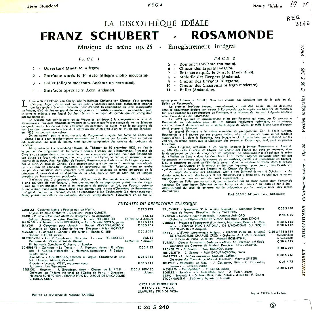 商品コード:REG-3146[仏VÉGA] D.ディクソン指揮/ シューベルト:付随音楽「キプロスの女王ロザムンデ」6(全曲)