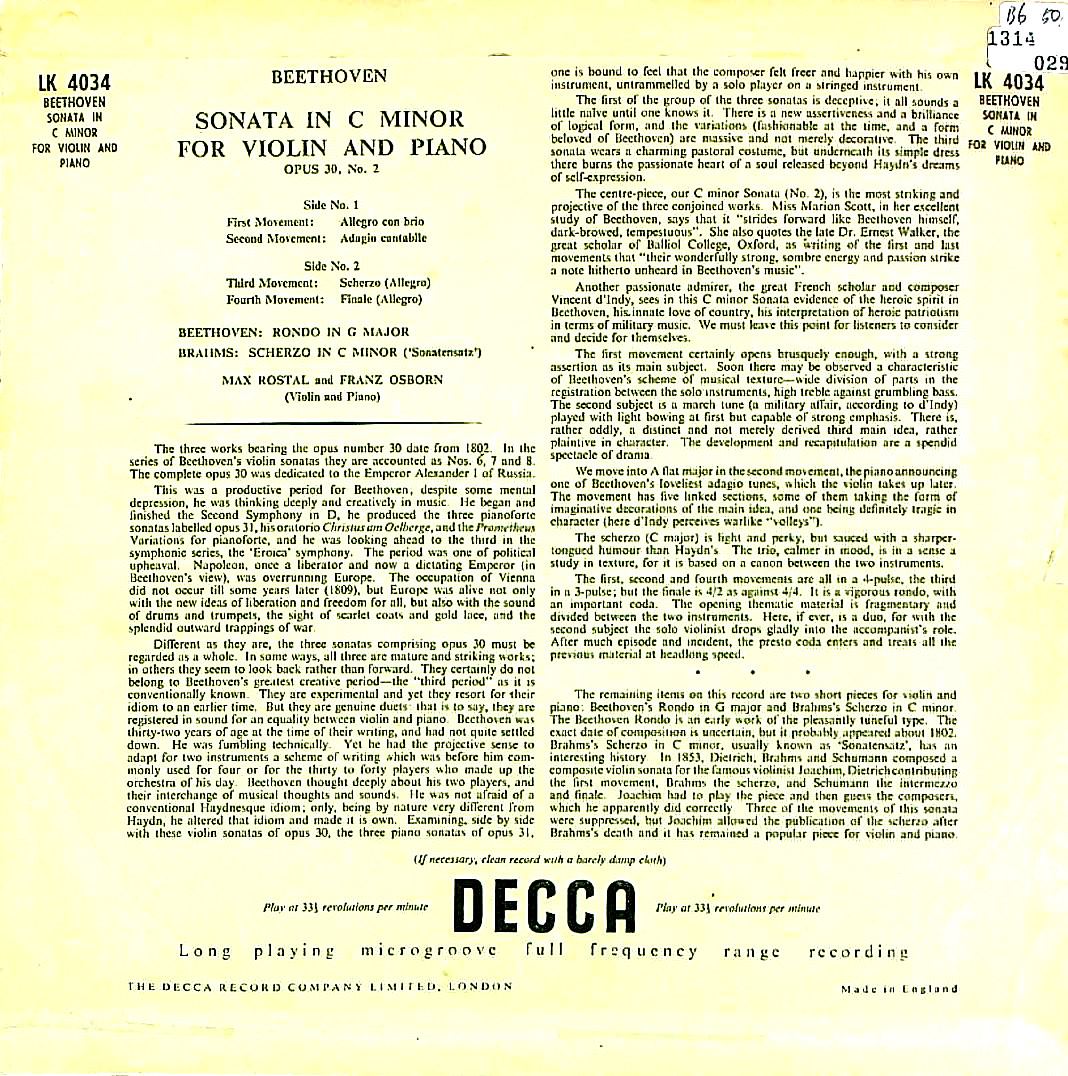 商品コード:1314-029[DECCA] M.ロスタル(vn) F.オズボーン(pf) / ベートーヴェン:Vnソナタ7番 他