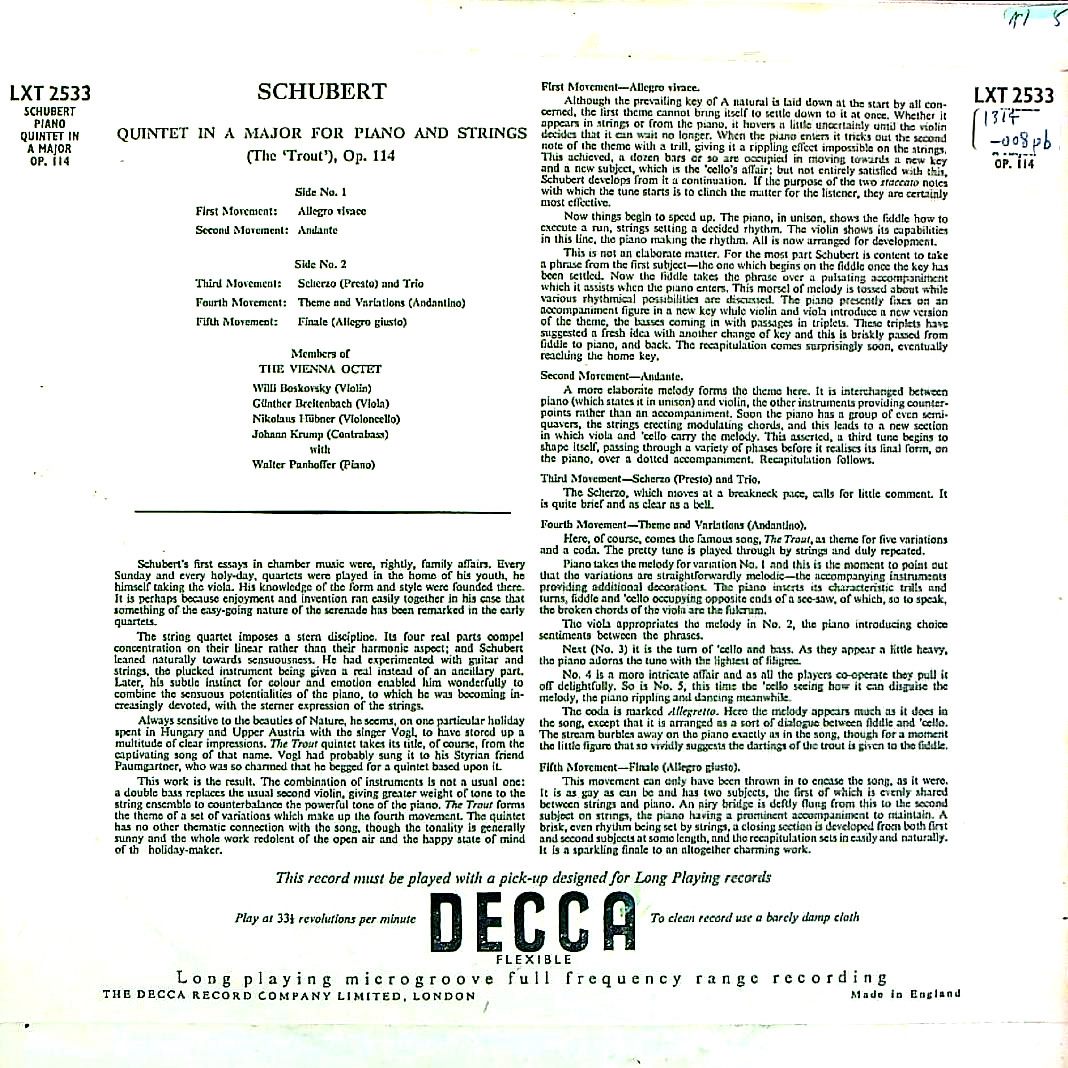 商品コード:1314-008pb[DECCA] W.パンホーファー(pf) ウィーン八重奏団メンバー/ シューベルト:Pf五重奏曲「鱒」