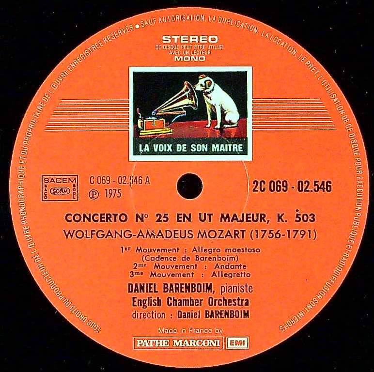 商品コード:REG-3175[仏La Voix De Son Maître] D.バレンボイム(pf)指揮/ モーツァルト:Pf協奏曲8, 25番