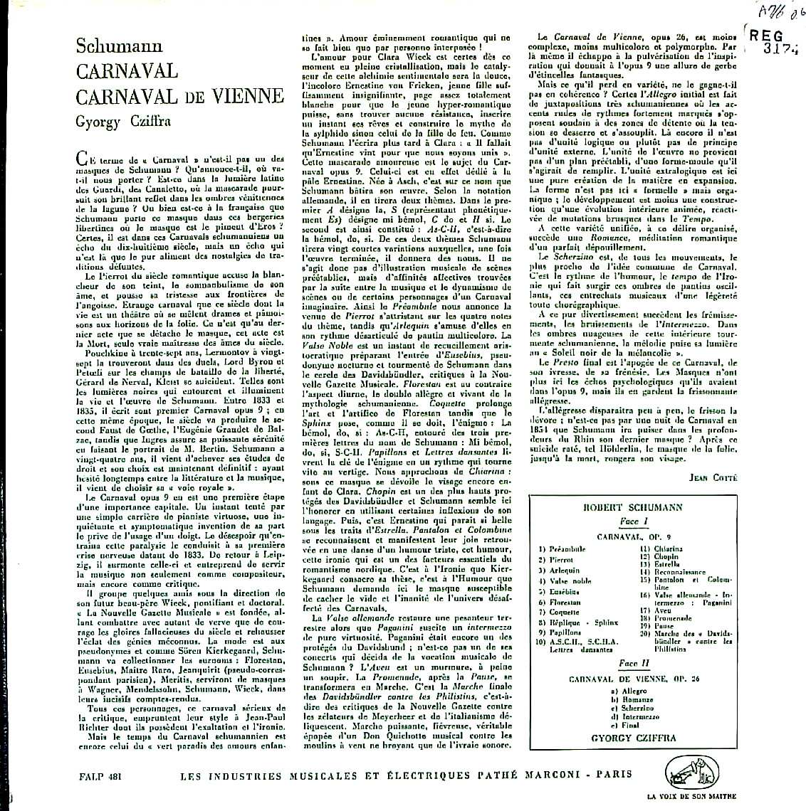 商品コード:REG-3174[仏La Voix De Son Maître] G.シフラ(pf) / シューマン:謝肉祭, ウィーンの謝肉祭