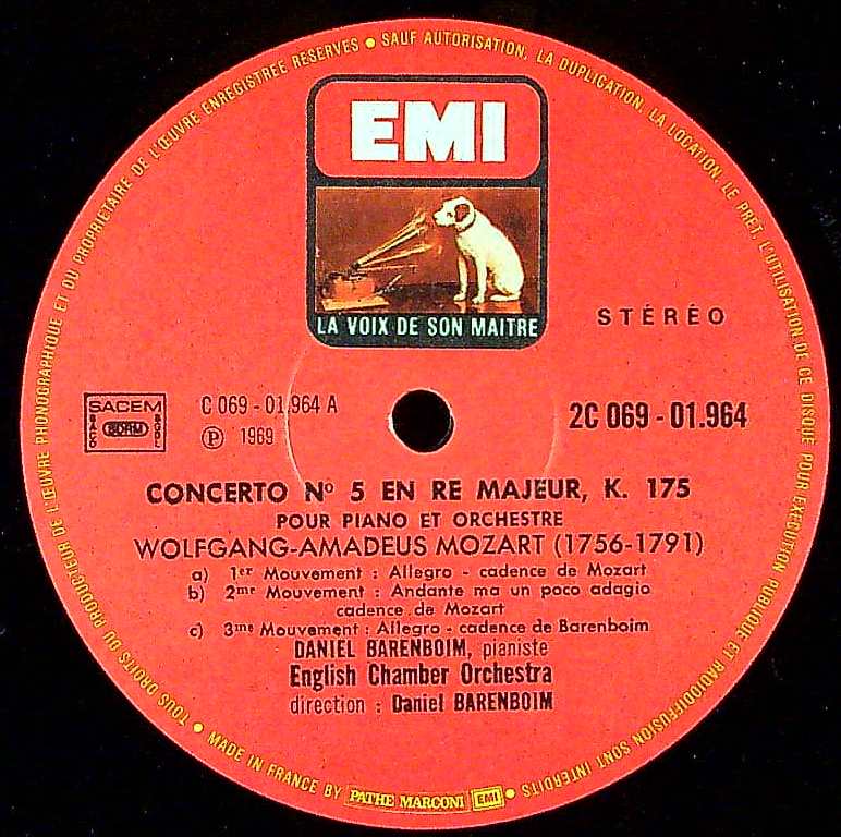 商品コード:REG-3173[仏La Voix De Son Maître] D.バレンボイム(pf)指揮/ モーツァルト:Pf協奏曲5, 9番「ジュノム」