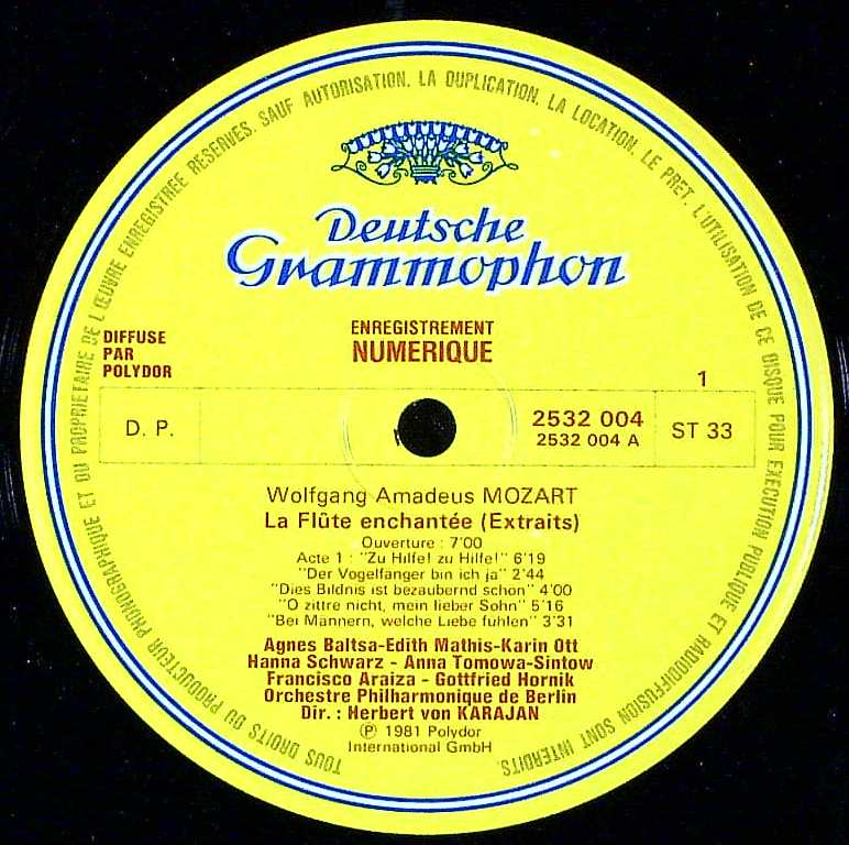 商品コード:REG-3171[仏DGG] H.v.カラヤン指揮 K.オット, E.マティス(s) 他 / モーツァルト:魔笛(ハイライト)