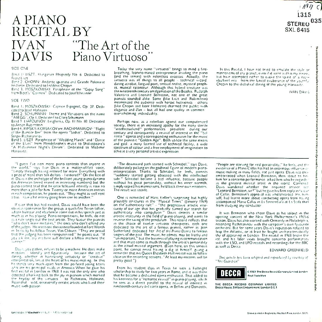 商品コード:1315-035[DECCA] I.デイヴィス(pf) / ピアノ・リサイタル/リスト, ショパン, モシュコフスキ 他