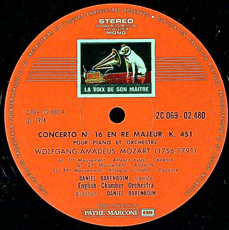 商品コード:REG-3182[仏La Voix De Son Maître] D.バレンボイム(pf) / モーツァルト:Pf協奏曲11, 16番