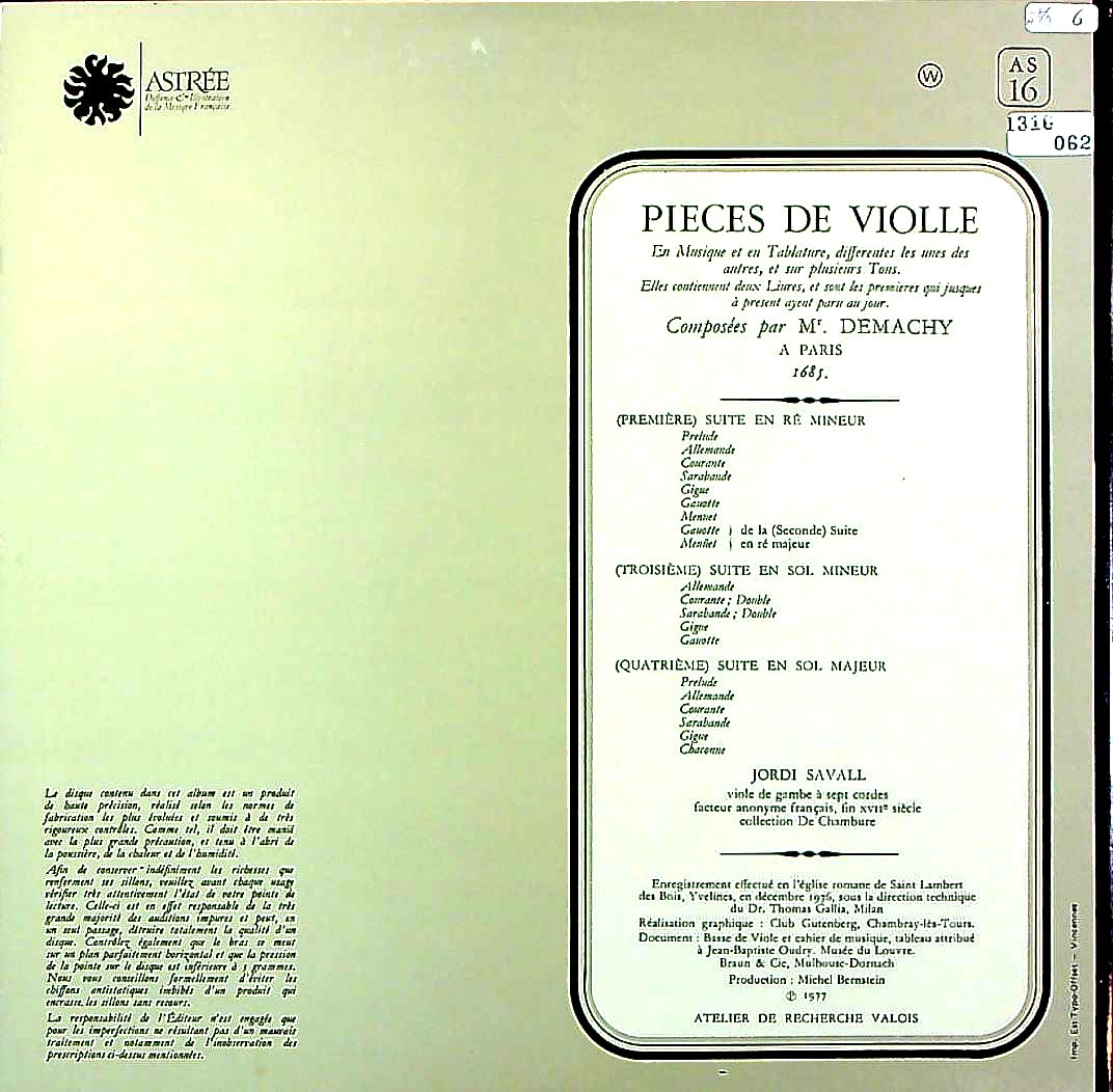 商品コード:1316-062[ASTRÉE] J.サヴァール(7弦 Gamb) / ドゥマシー:ヴィオール曲集/組曲1, 3, 4番