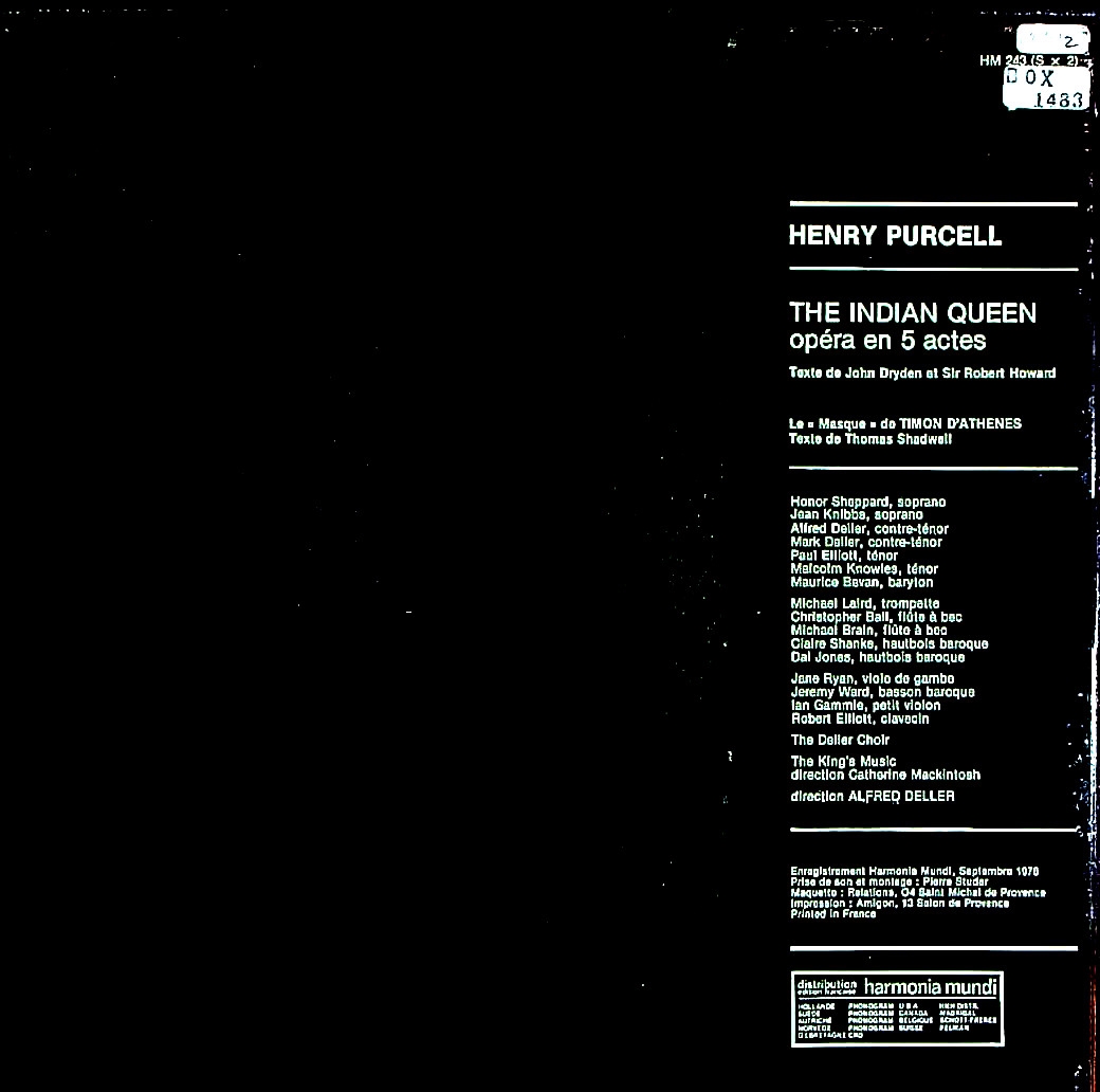 商品コード:BOX-1483[仏Harmonia Mundi] A.デラー(c-t)指揮デラー・コンソート/ パーセル:歌劇「インドの女王」(全曲)