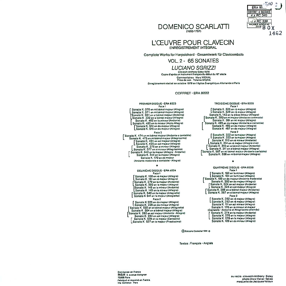 商品コード:BOX-1462[仏ERATO] L.ズグリッツィ(cemb) / 「スカルラッティ:Cembソナタ全集Vol.2」(65曲)