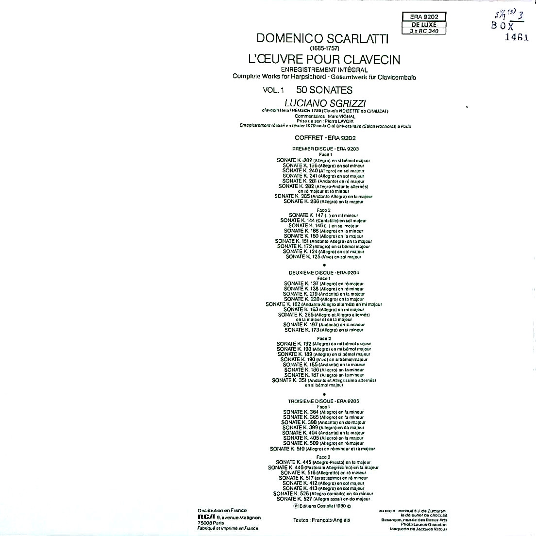 商品コード:BOX-1461[仏ERATO] L.スグリッツィ(cemb) / 「スカルラッティ:Cembソナタ全集Vol.1」(50曲)