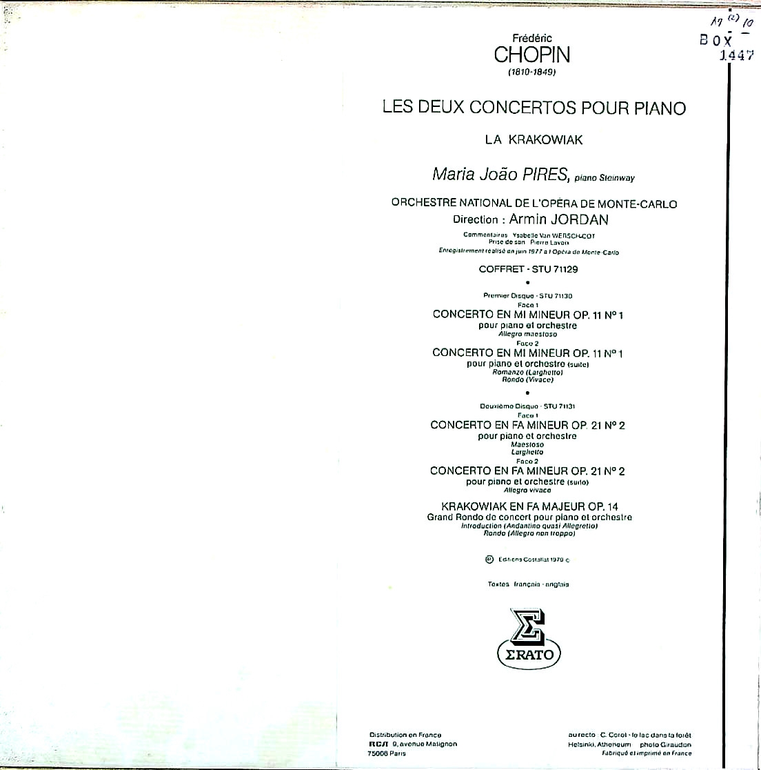 商品コード:BOX-1447[仏ERATO] M.J.ピレシュ(pf) / ショパン:Pf協奏曲1, 2番, 演奏会用ロンド「クラコヴィアク」