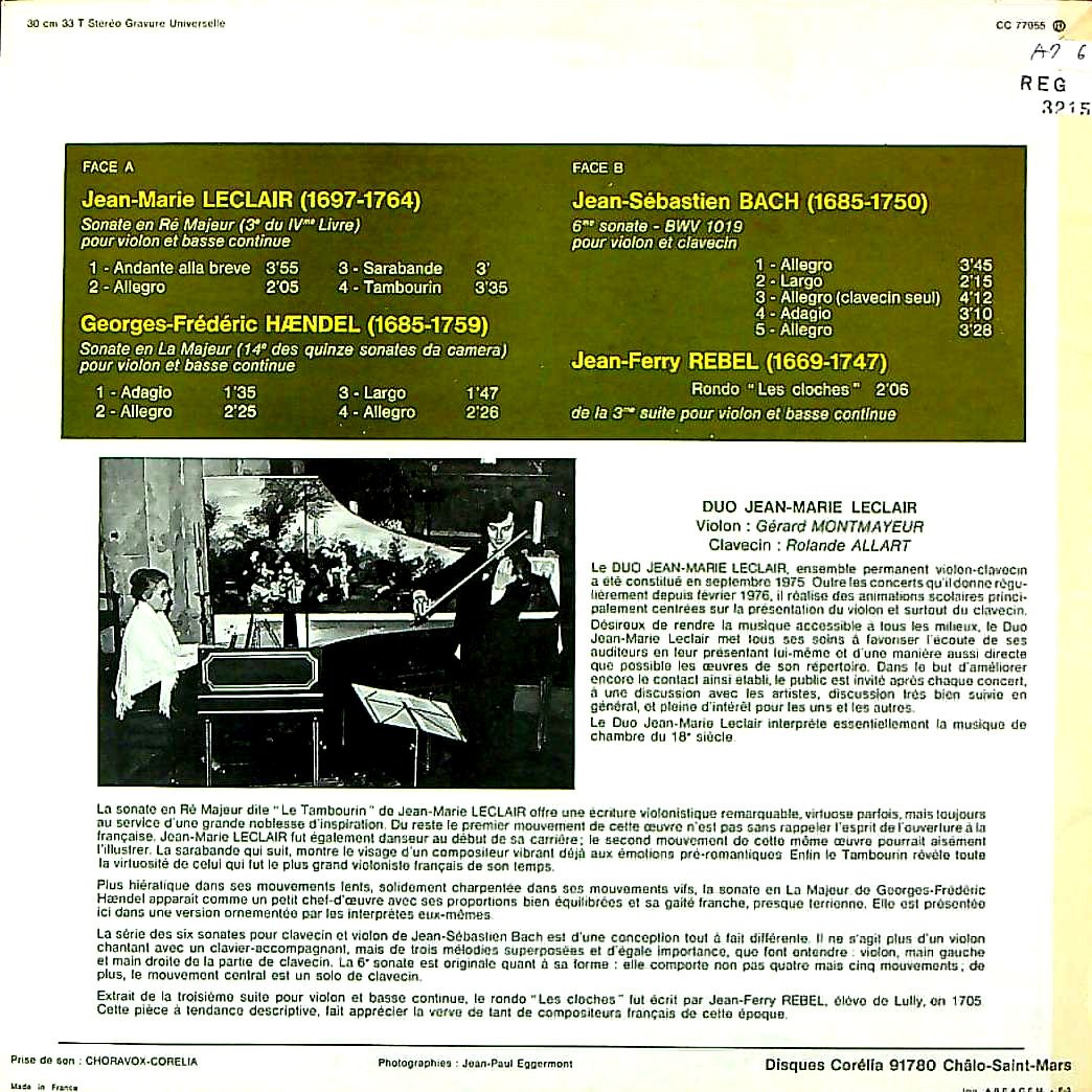 演奏者:ルクレール・デュオ(G.モンマイヨー(vn)R.アラール(pf))