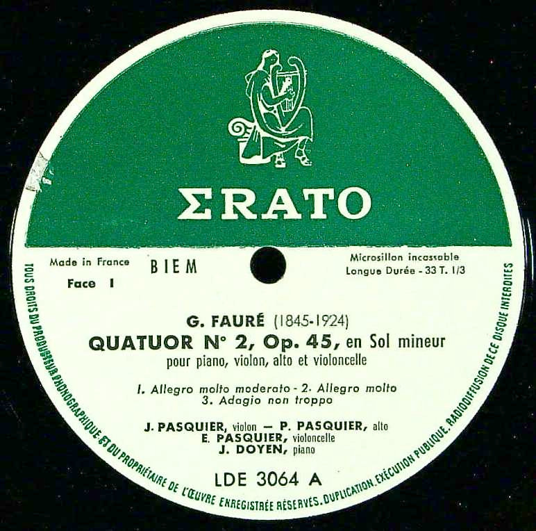 商品コード:1318-058[ERATO] J.ドワイヤン(pf) パスキエ・トリオ / フォーレ:Pf四重奏曲2番, Pfトリオ