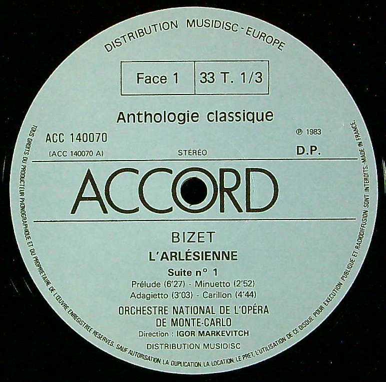 商品コード:1318-043[ACCORD] I.マルケヴィチ指揮/ ビゼー:アルルの女第1組曲, 第2組曲