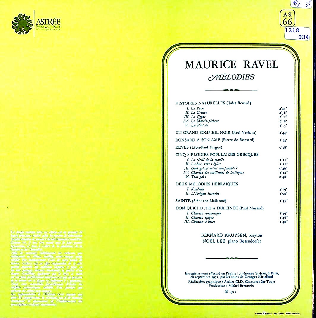 商品コード:1318-034[ASTRÉE] B.クルイセン(br)/ ラヴェル:歌曲集