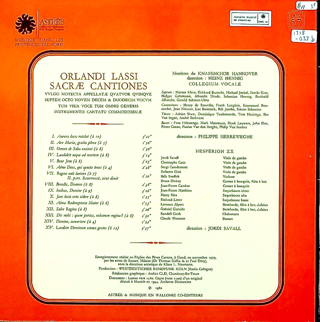 商品コード:1318-033b[ASTRÉE] P.ヘレヴェッヘ/J.サヴァール指揮/ ラッソ:聖歌集(15曲)
