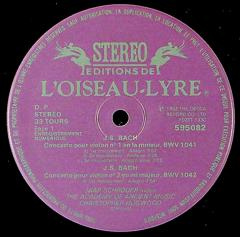 商品コード:1318-012[L'OISEAU LYRE] J.シュレーダー, C.ハイロンズ(vn) / バッハ:Vn協奏曲1, 2番, 2Vn協奏曲