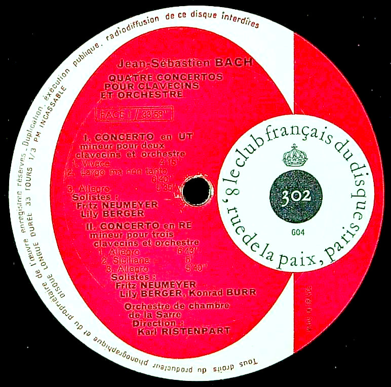 商品コード:1318-010[Club Français] F.ノイマイヤー, L.ベルガー, K.ブル, I.ウルブテイト(cemb)/ バッハ:2Cemb協奏曲, 3Cemb協奏曲, 4Cemb協奏曲